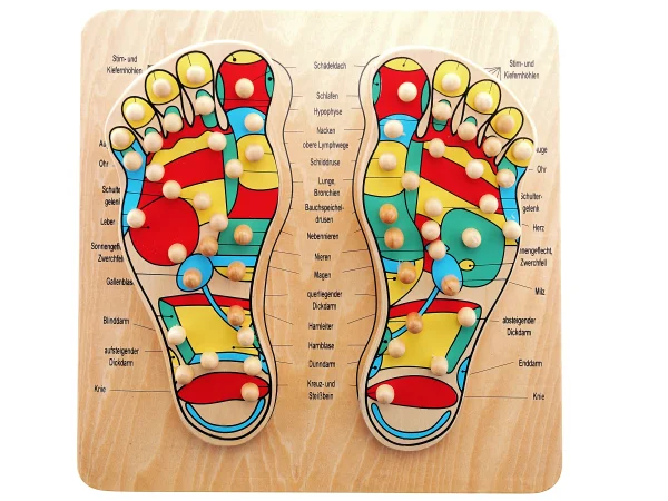 Diese Reflexpunkte sind bestimmten Bereichen an den Füßen zugeordnet. In jedem dieser Bereiche sitzen die Nervenendpunkte bestimmter Organe und Muskeln. Durch Stimulierungdieser Reflexpunkte werden die Selbstheilungskräfteaktiviert und dadurch Symptome und Krankheiten bekämpft.